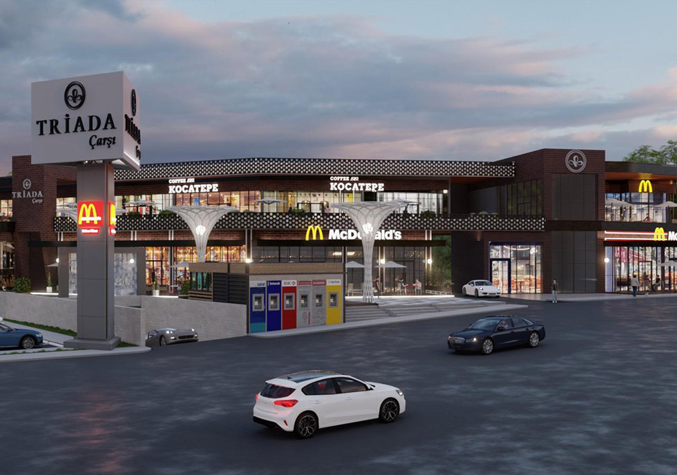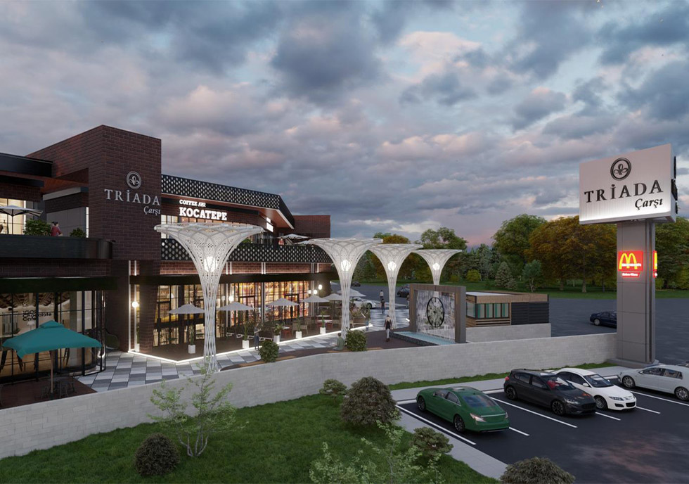 Ankara’nın gözde semtlerinden Çayyolun’da , estetik ve işlevselliği mükemmel bir şekilde bir araya getiren bir proje olarak karşımıza çıkan Triada Çarşı, Meva tasarımın ilham verici tasarımıyla bölgenin yeni cazibe merkezi haline gelmektedir. Bu eşsiz mekan, içerisinde barındırdığı dünya çapında ünlü markaların yanı sıra modern mimarinin izlerini taşıyan bir atmosfer sunmaktadır.